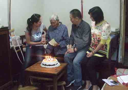 盐大街社区妇联主席说,社区一直以来都将关爱老年人作为社区工作的一项重要内容,积极探索一条有特色的社区居家养老服务的新路子,建立老人档案,经常开展为老服务活动。这次工作人员精心准备,只为给老人带来了一个简单却又特别的生日!