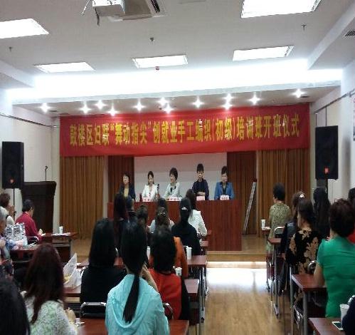 为提升妇女综合素质,掌握手工编织技能,发展壮大一批妇女手工编织骨干,从而带动和帮助更多的妇女参与到手工编织队伍中来,在手工编织业领域拓宽居家灵活就业,实现多元增收。5月8日,鼓楼区妇联“舞动指尖”创就业手工编织(初级)培训班在幕府山街道云谷山庄社区三楼会议室正式开班。参加开班仪式的有市妇联发展部部长尹霞、区妇联主席祁敏、区妇联副主席王小菲、宝塔桥街道副主任、妇联主席姜晓薏以及参训学员共60余人。