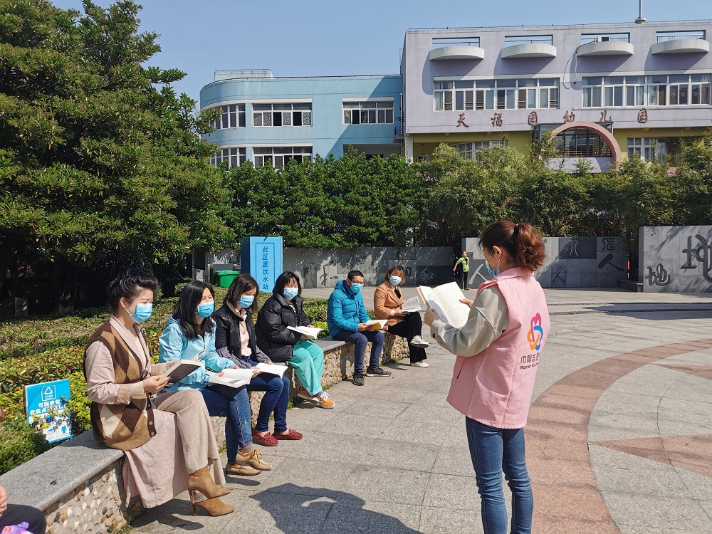活动以妇联志愿者小陈诵读小说《萤火虫小巷》中的片段开始,这是个关于爱、成长与忠诚的故事,也让我们不禁开始检视人生最重要的事物究竟是什么,大家也表示了在这次疫情期间更加体会到生命可贵和亲情友情爱情的珍惜。另外还分享了历史类书籍《三国那些事》;养生类书籍《黄帝内经使用手册》;还有成功人士必读书《戒掉拖延症你敢吗?》等。活动开展了40分钟,大家晒晒太阳,分享读书心得,整个活动让大家体会到身心的愉悦,通过这次活动,希望疫情期间大家都可以减少聚集,享受读书带来的快乐。