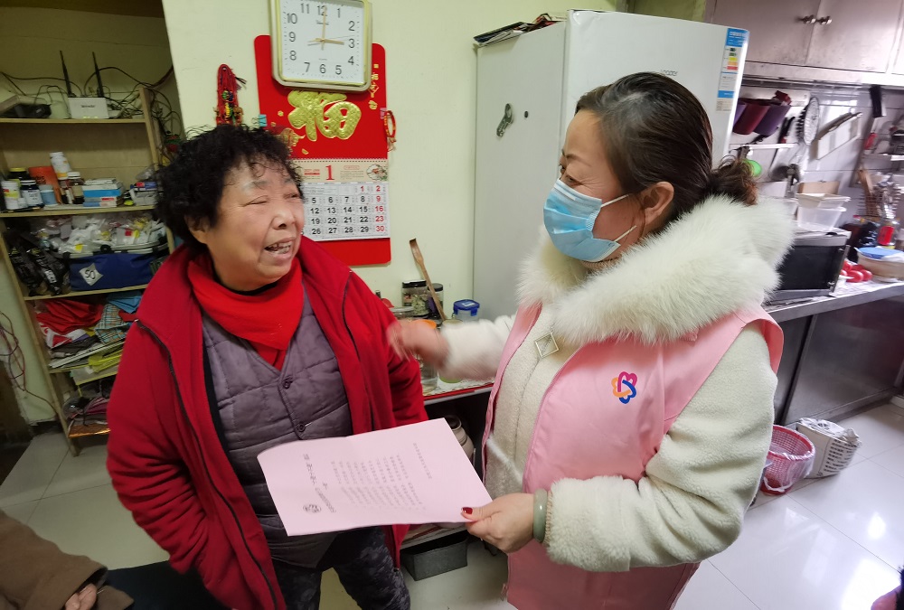 1月28日,鼓楼区妇联开展“文明江苏,温暖新春”志愿服务集中行动,组织巾帼志愿者为小桃园社区空巢老人王选珍提供志愿服务。