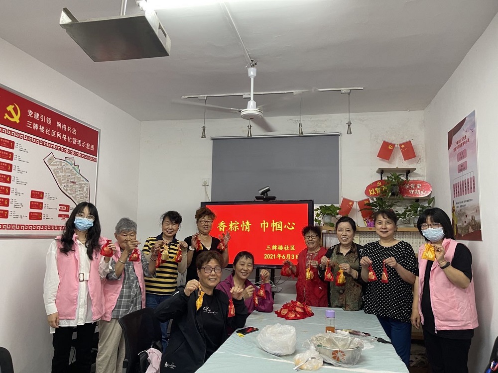 提到美味可口的粽肯定就能让人联想到传统端午佳节,如今又是一年粽叶飘香时节,为了弘扬我国传统节日文化,南京市鼓楼区中央门街道三牌楼社区妇女委员会在6月3日组织了社区居民们来到社区活动室开展了丰富多彩的端午活动,孟广红书记热情的为大家准备了精致的中药香囊和美味的手工香粽,清新的药草味结合着粽叶糯米香让社区居民感到了浓浓的巾帼心,分外温暖。