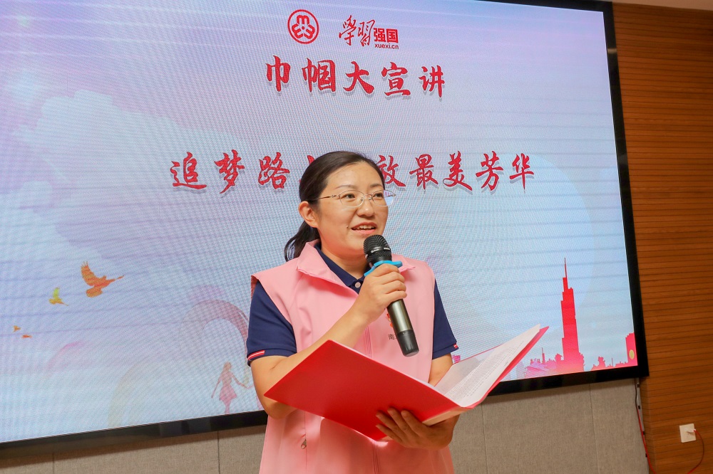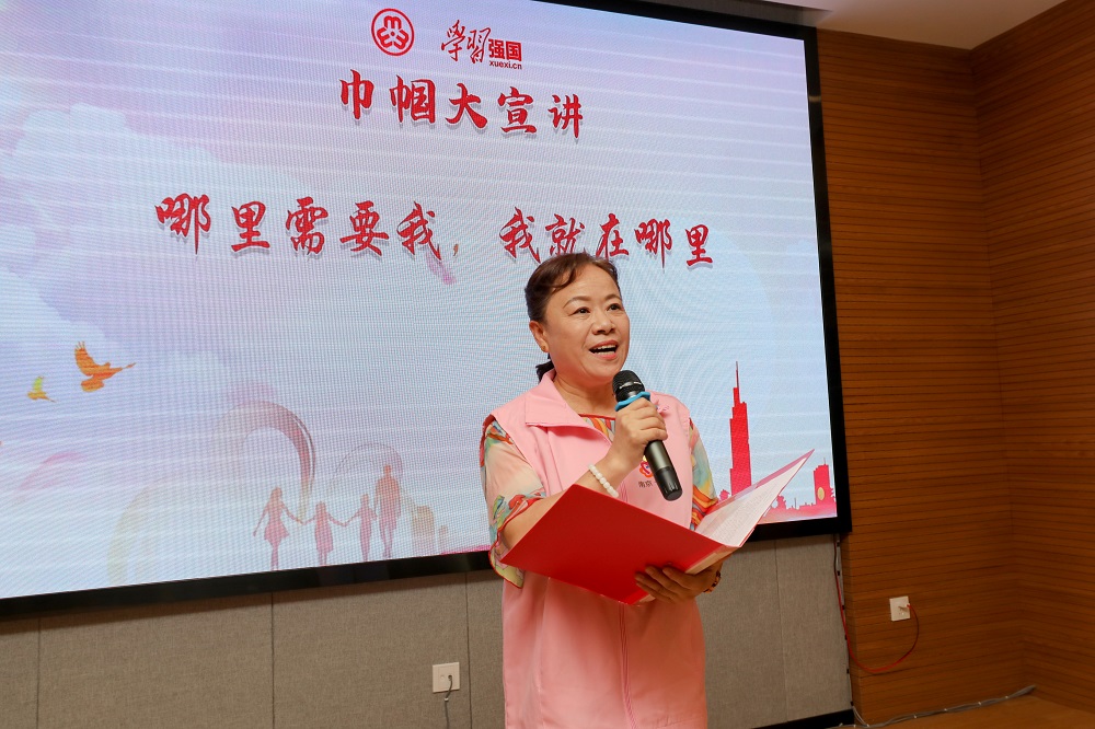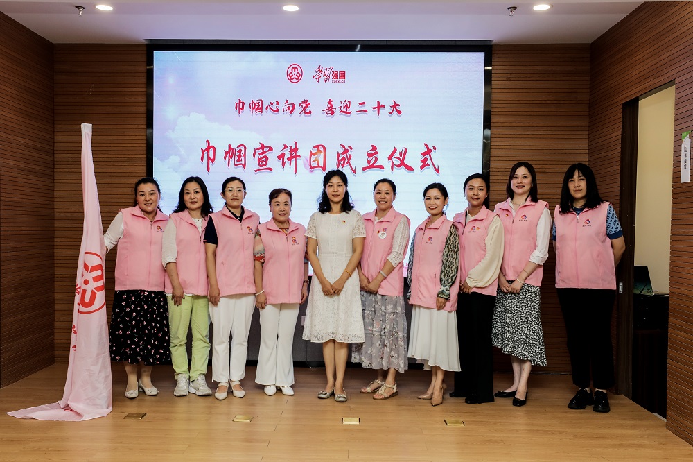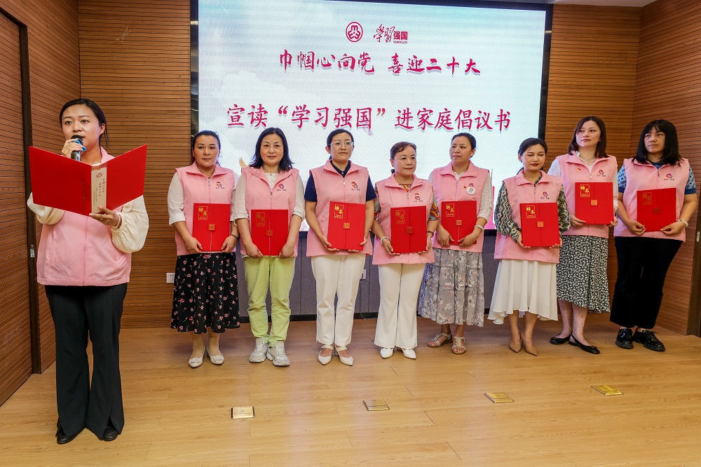 活动中,由最美家庭、三八红旗手、巾帼岗位明星、巾帼志愿者等组成的“学习强国家庭”巾帼宣讲团正式宣告成立,阙晶晶主席为宣讲团授旗,并为首批巾帼宣讲员代表颁发聘书。宣讲员将发挥领学带动作用,走进新时代文明实践中心(所、站)、巾帼志愿服务阳光站、巾帼红色教育基地等,引导广大妇女群众、家庭下载使用“学习强国”app,提升妇女群众和广大家庭的学习参与度、幸福感,激发“强国有我”的使命感、责任感。