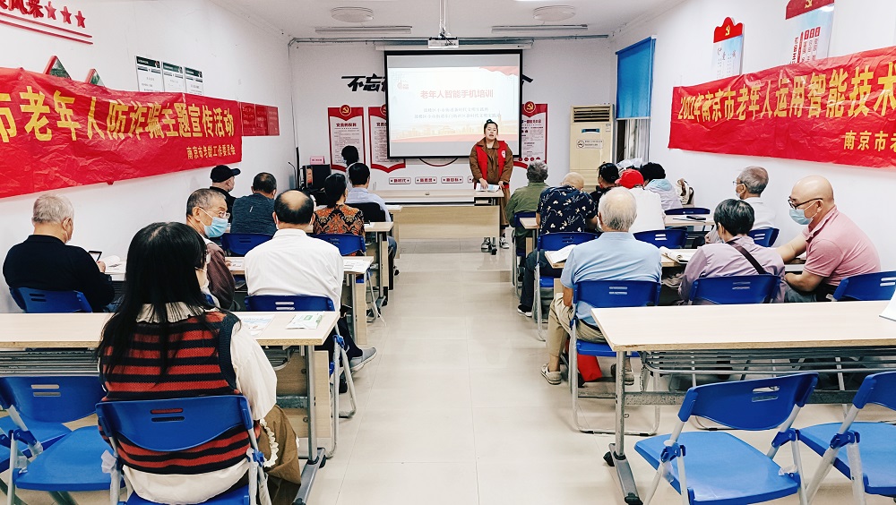 今天上午,东门街社区妇联联合社区老年共同邀请南京市老龄工作委员会的老师为辖区内的居民开展老年人智能手机培训。