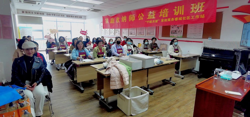 为深入学习贯彻落实习近平总书记重要讲话和全国两会精神,引领妇女群众坚定不移听党话、跟党走,首先由区委党校老师、区红色巾帼讲师团成员朱悦做二十大精神宣讲,朱悦老师围绕二十大报告,从五个牢牢把握,为大家进行了深入浅出的宣讲,具有很强的指导性和针对性。区妇联陈亚蕾副主席代表区妇联为五个家政服务社区工作站赠送《习近平走进百姓家》一书。最后进行了4个课时的“整理收纳师”公益培训, 讲授了《2022中国整理行业前景与趋势报告》、《如何5步打造不复乱不换季的衣橱》科目,受到学员们欢迎。