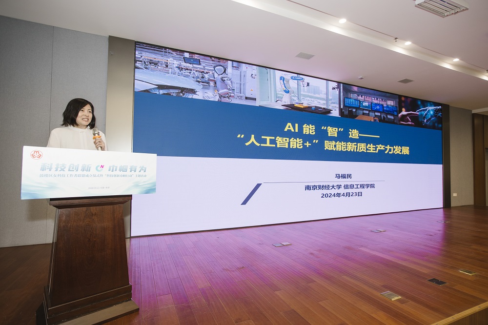 联盟成立仪式开始前,南京财经大学信息工程学院副院长马福民教授进行了“巾帼大宣讲”,对“新质生产力”这一热点进行了解读与分享学习。