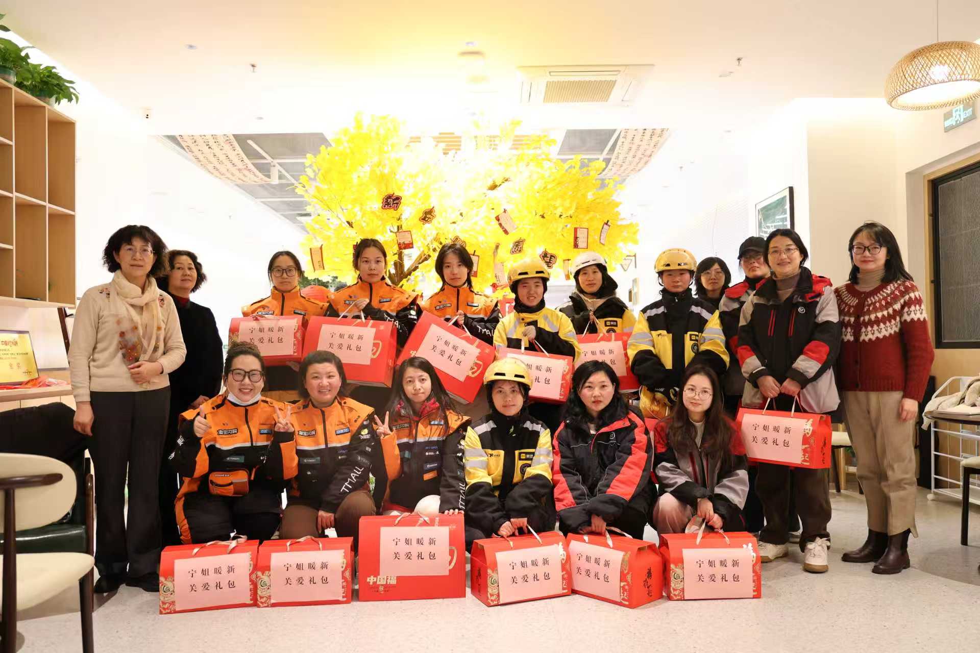新春将至,暖意融融。为切实履行妇联组织引领、服务、联系职责,2 月 9 日下午,鼓楼区妇联在宁海路街道康藏路社区 “暖新食堂” 举办 “暖新共团圆・巾帼迎新春” 新春关爱活动,为辖区 20 名快递员、外卖配送员等新就业女性群体送上“娘家人” 的新春祝福与暖心关怀,区妇联副主席陈亚蕾、区委社会工作部副部长钱文悦参加慰问活动。