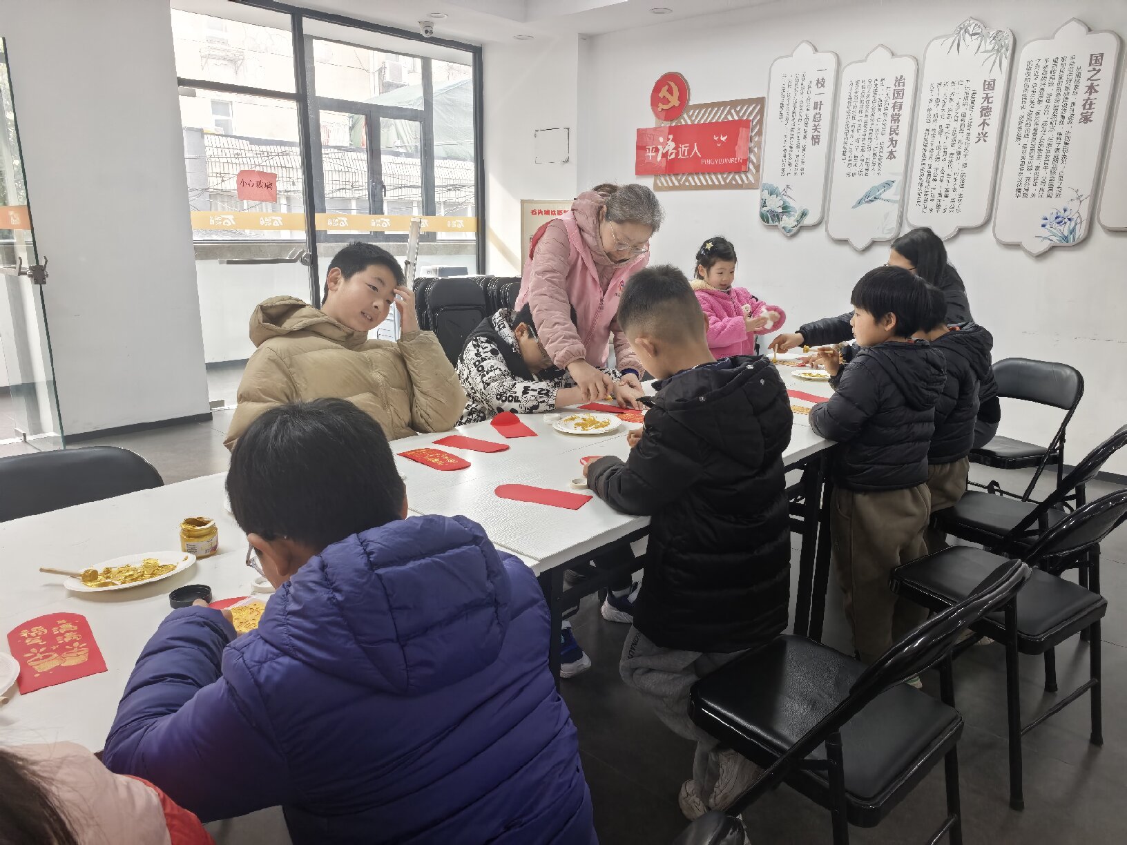 活动现场暖意融融、气氛热烈。妇联志愿者提前准备了彩纸、剪刀、胶水、金粉、模板等丰富材料,向孩子们讲解红包的文化寓意与制作步骤,并耐心示范折叠、裁剪、粘贴、装饰等技巧。在志愿者的陪伴与指导下,孩子们认真动手、大胆创作,一张张普通的彩纸在小手中变成了一个个精致可爱、创意十足的新春红包。