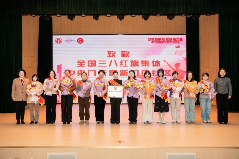 在“致敬·榜样力量”篇章,活动聚焦全国三八红旗集体——中央门街道新门口社区的姐妹们,以原创情景话剧《好大一个家~家好大家好》生动演绎了社区党委书记王卫平带领团队,运用“新+工作法”,以女性特有的细腻与坚韧激活老旧社区治理的动人故事。市、区领导现场为她们赠送鲜花,致敬这份沉甸甸的集体荣誉。